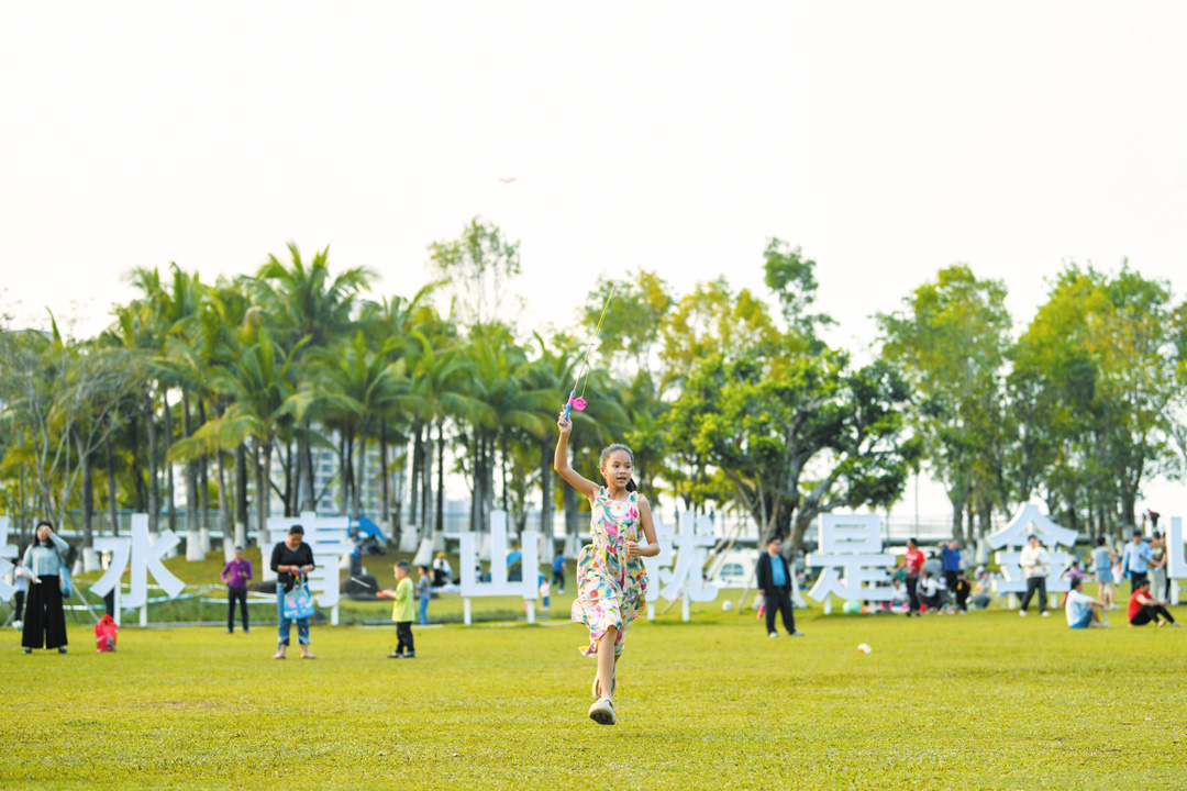 4月4日,在美舍河凤翔湿地公园,不少家长带着孩子来此嬉戏玩耍。本报记者苏弼坤摄4月4日,市民游客在海口五源河国家湿地公园踏青骑行。本报记者石中华摄今年清明假期,海口春光明媚,正是踏青赏花、采摘游玩的好