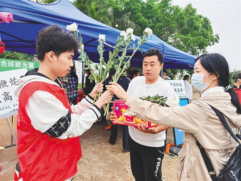 4月4日,清明假期首日,海口乡村采摘游持续升温,不少市民游客走进田间地头,体验采摘乐趣、感受田园风光。春日里的累累硕果不仅串起火热的春游经济链,更为农户增收和乡村振兴注入新活力。当天,在琼山区红旗镇大