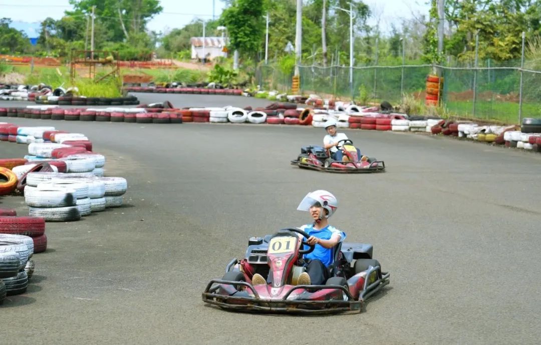 除此之外,在火山泉休闲农庄里也热闹非凡,市民游客体验垂钓、卡丁车等活动,玩得不亦乐乎。