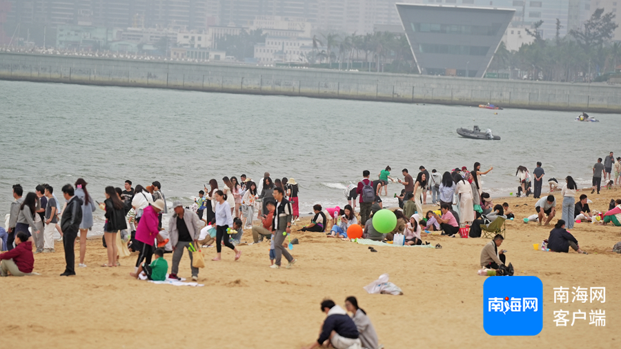 玩沙子、戏水……清明假期,众多市民、游客来到海口西海岸游泳、玩帆船运动等,享受椰风海韵。