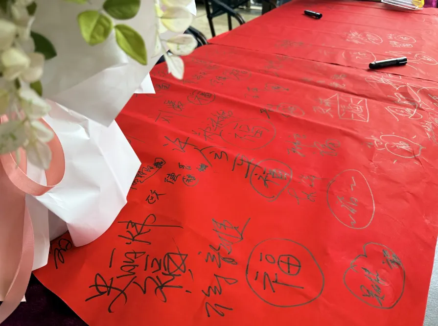 当天上午8点时许,火山口游客中心门口已是热闹非凡。老年朋友们带着期待陆续到场,工作人员一边核对信息、引导签到,一边递上瓶装饮用水和精致的祈福卡片。老人们认真写下对生活的美好期许,将卡片贴在专属祈福墙上,并亲手画上属于自己的福字,一笔一划间满是对岁月的热爱。待人员到齐,大家围着主题横幅合影留念,快门按下的瞬间,定格了秋日里最温暖的笑容。