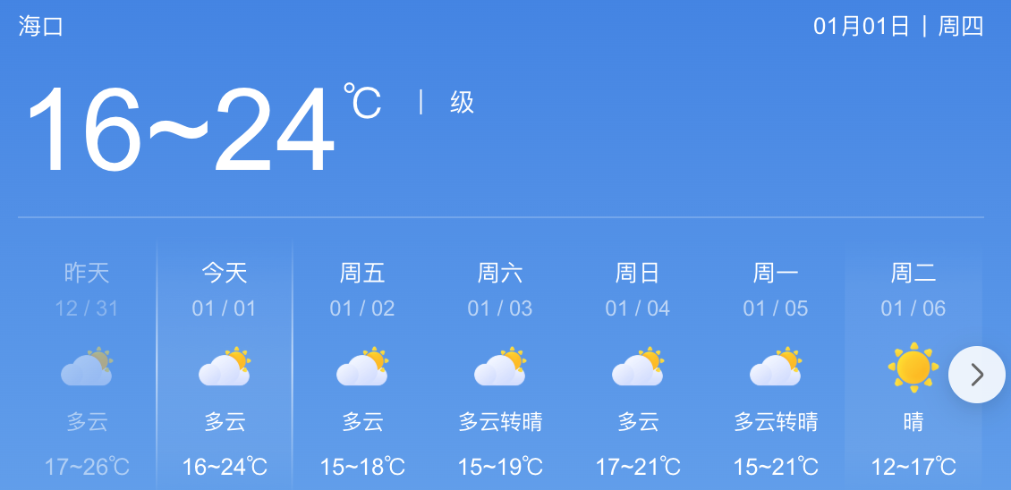 1月2日,多云,气温15-18℃