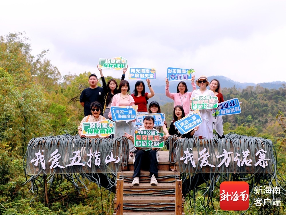 游客打卡五指山方诺寨热带雨林景区。记者 洪盛伟 摄