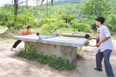 2004年,三亚崖城一乡村学校学生在打乒乓球。 资料图