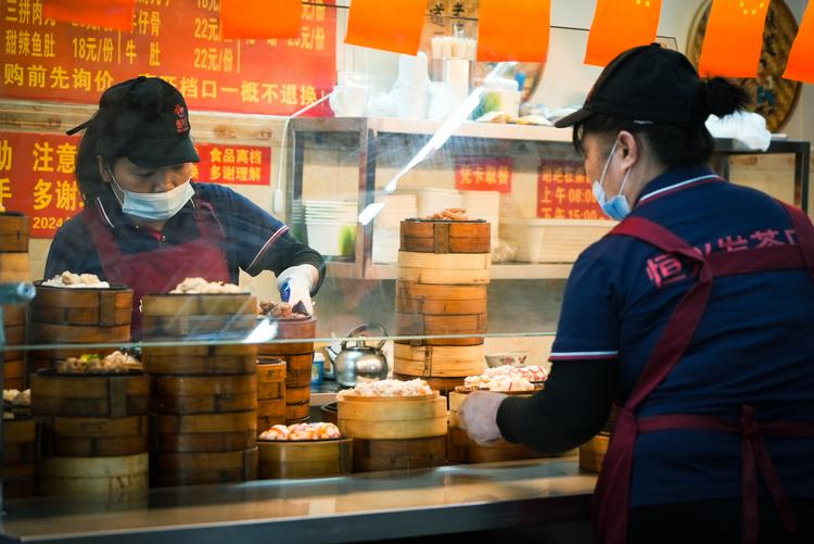 晨起的蒸笼白汽、