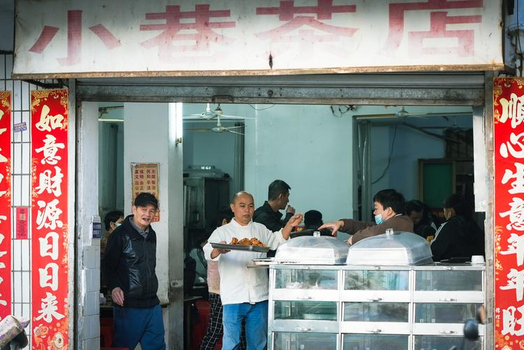 小巷茶店在海口开了20年,是常见的路边大排档式茶点铺。店铺开在巷子里,做的是街邻生意,产品价格实惠,出品地道。如果开车,建议导航到附近,然后步行进入巷子。下午三四点是店里最热闹的时候,这时候会有大部分新鲜出炉的面包和糕点。推荐产品有炸鸡翅、萝卜糕和各种面包。