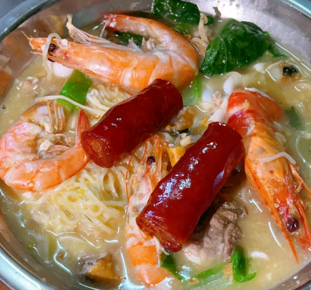 好像每座城市都有一家开在水井边的小店,环境简陋,但人气很旺。这家的伊面汤味道鲜甜,配料是伊面汤常见的老几件:鲜虾弹嫩、海白清甜、鸡蛋香滑、蒜头油香。在水井旁吃一碗热腾腾的伊面汤,耳边是市井的喧嚣,眼前是氤氲的热气,感觉非常治愈和惬意。