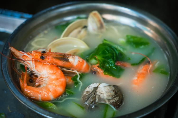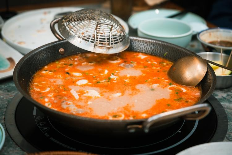 开在骑楼老街里的秀澜糟粕醋,装修风格融合了海南地域特色和现代休闲美学,适合三两好友聚餐和宴请宾客。店铺不大,但设计感十足,可以看到活海鲜池。店铺名字来源于老板的奶奶“秀澜”,最初是奶奶在村里卖糟粕醋,现在年轻人接手,想把这份家乡的味道传承下去。店里的糟粕醋汤底是自己酿制的,酸甜咸辣平衡得恰到好处,喝起来非常开胃。招牌产品是海鲜糟粕醋、牛杂糟粕醋。