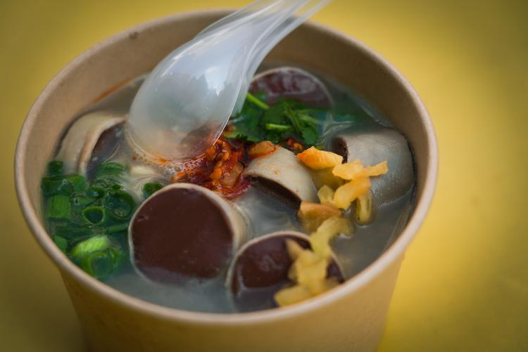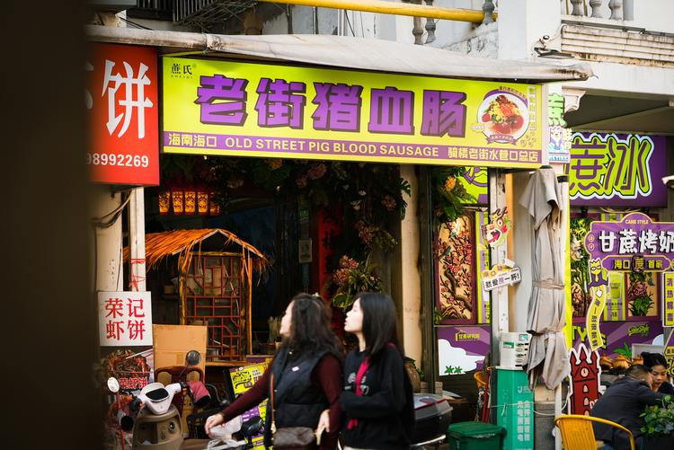 这家店是海口水巷口老街里一家明星小店,招牌产品甘蔗冰还吸引知名艺人打卡,虽然店面不大,但人气很旺。店铺周围是充满历史感的骑楼建筑,食客吃美食的同时也能感受老海口的风情。招牌猪血肠做得非常滑嫩,口感鲜美,佐以葱花、香菜、萝卜碎等小料风味更佳。除了猪血肠,店里的甘蔗冰也值得一试,是现榨的甘蔗汁,可以很好地中和猪血肠的油腻感,解腻又清爽。