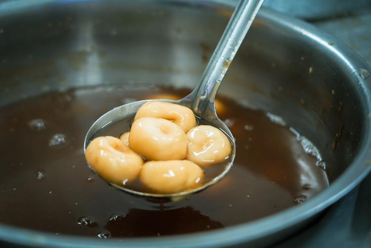 “叮咚、叮咚……”这清脆的敲击声,来自一位被戏称是随机刷新的NPC阿公,他一副扁担,挑着叮咚糖走街串巷叫卖。这种小吃据说历史悠久,“叮咚糖阿公”从十几岁就开始这门手艺,至今已有50年。叮咚糖是用麦芽糖包裹着芝麻、花生等配料制成的,售卖时老人会用锤子敲击糖块使其成型,再将糖条拉长、扯断,分给顾客。外层的麦芽糖甜蜜而微微粘牙,中间的芝麻花生碎香脆可口,吃起来香甜酥脆。