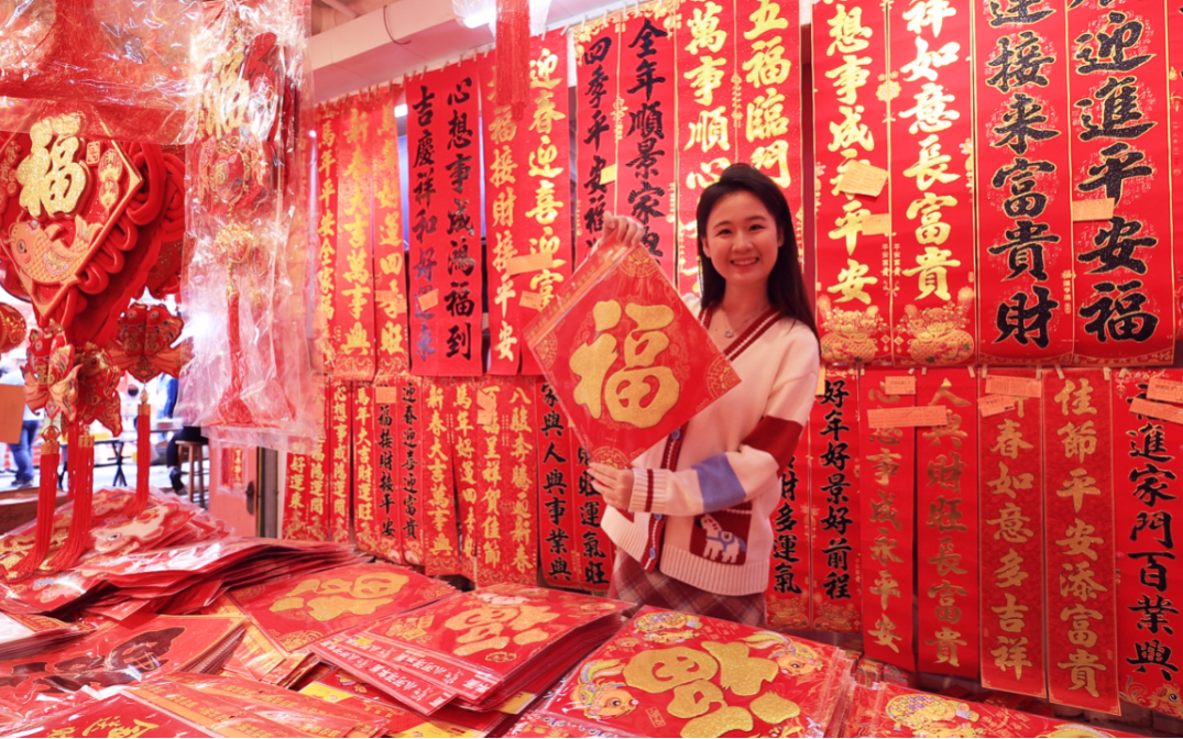 骑楼的春联店铺直接美成红色海洋!一家家春联店铺挂满了福字、春联、红灯笼,还有马年专属挂饰,氛围感直接拉满!