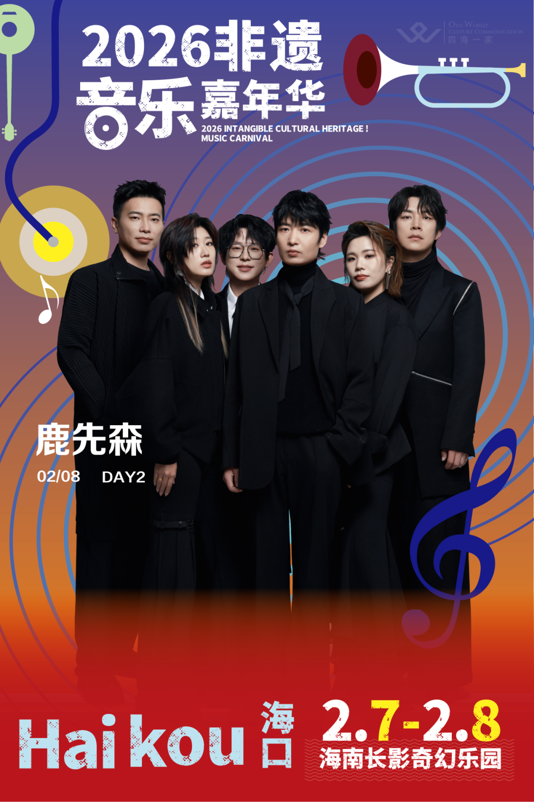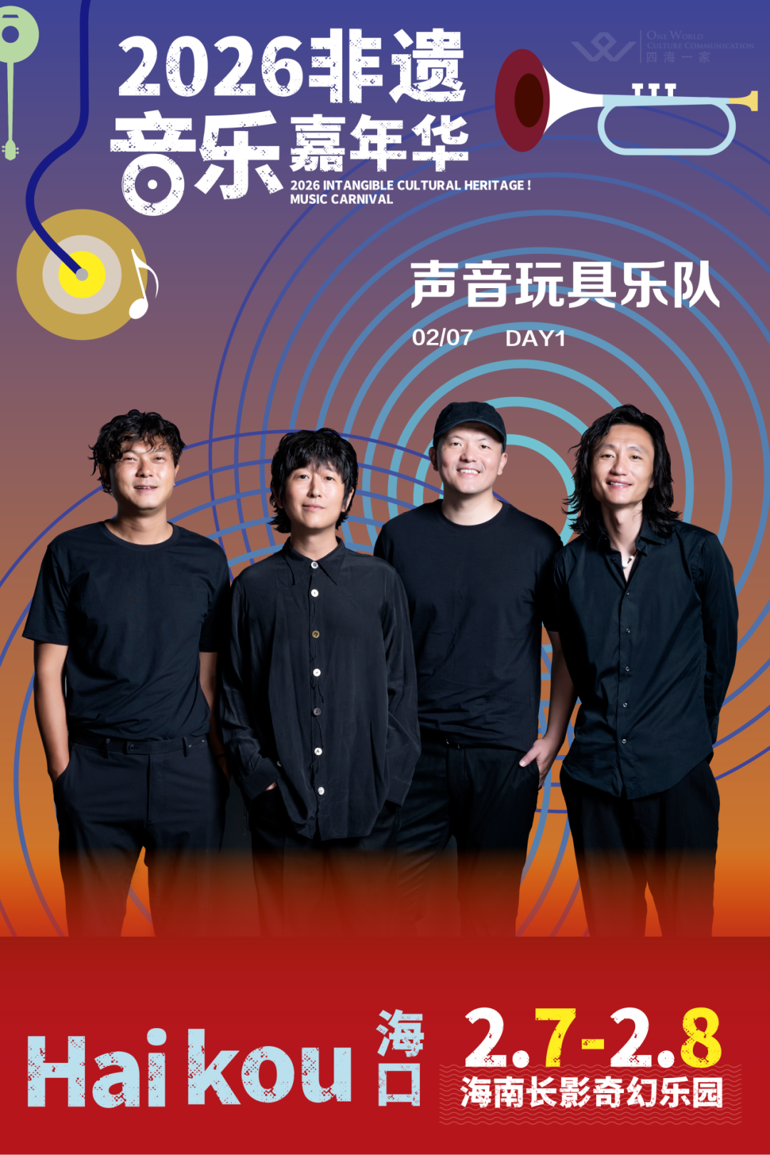 十余组国内知名音乐人及乐队也将齐聚海口,在连续两天的舞台上,实现非遗元素与流行、摇滚、民谣、电子等多风格音乐的创造性融合,展现千年遗响与现代舞台碰撞的非凡魅力。每日七组嘉宾震撼演出,还有至少四组嘉宾敬请期待!