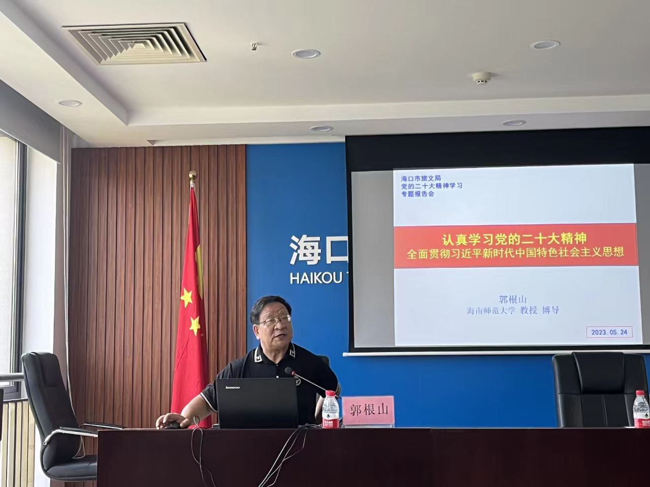 为深入学习贯彻党的二十大精神,教育引导全市旅文系统党员干部更加完整、准确把握党的二十大精神,切实把贯彻党的二十大精神落实到全市旅游文体工作各方面、全过程。5月24日,市旅文局特邀海南师范大学马克思主义学院郭根山教授围绕学习贯彻党的二十大精神作专题授课辅导,局领导、局机关全体干部和各基层单位党支部全体支委参加学习。