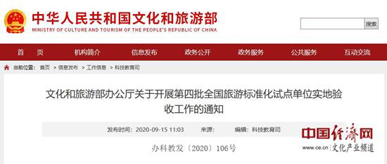 文旅部公布第四批全国旅游标准化示范单位名单