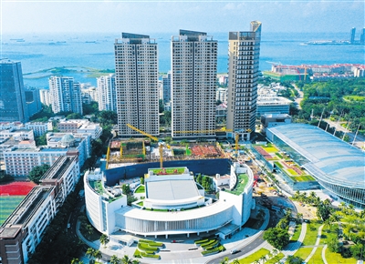 新海南客户端、南海网、南国都市报10月9日讯,位于龙华区滨海大道的海口演艺新空间(二期)项目工地,施工人员正忙着施工。记者获悉,该项目预计在本月底封顶。