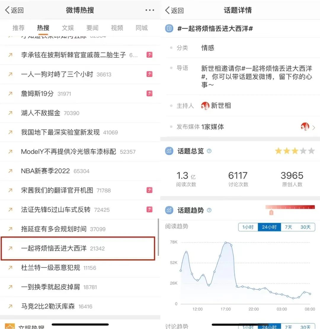 赛事村开放当天,海口市旅游和文化广电体育局与徐京坤、新世相共同发起的“把烦恼丢进大西洋”活动的话题登上微博热搜,目前阅读量已达1.3亿。
