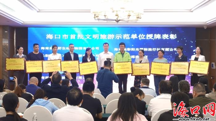 首批海口市文明旅游示范单位今日授牌表彰。记者史子杨 摄