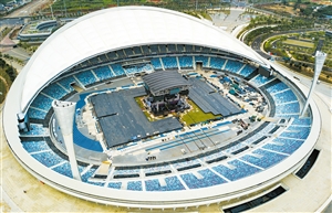 11月13日,记者在海口五源河体育场看到,工作人员正在对2019华晨宇“火星”演唱会的舞台进行最后的收尾工作。 据现场工作人员介绍,目前演唱会舞台搭建已基本完成,正在进行信号、线路和LED屏幕的调试,以及演唱会现场周边的氛围打造。 本报记者 苏弼坤 摄