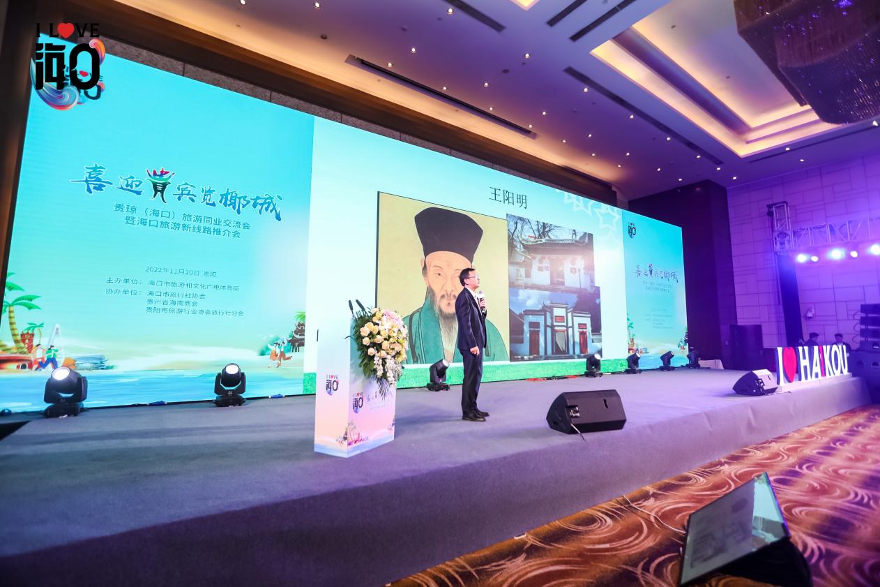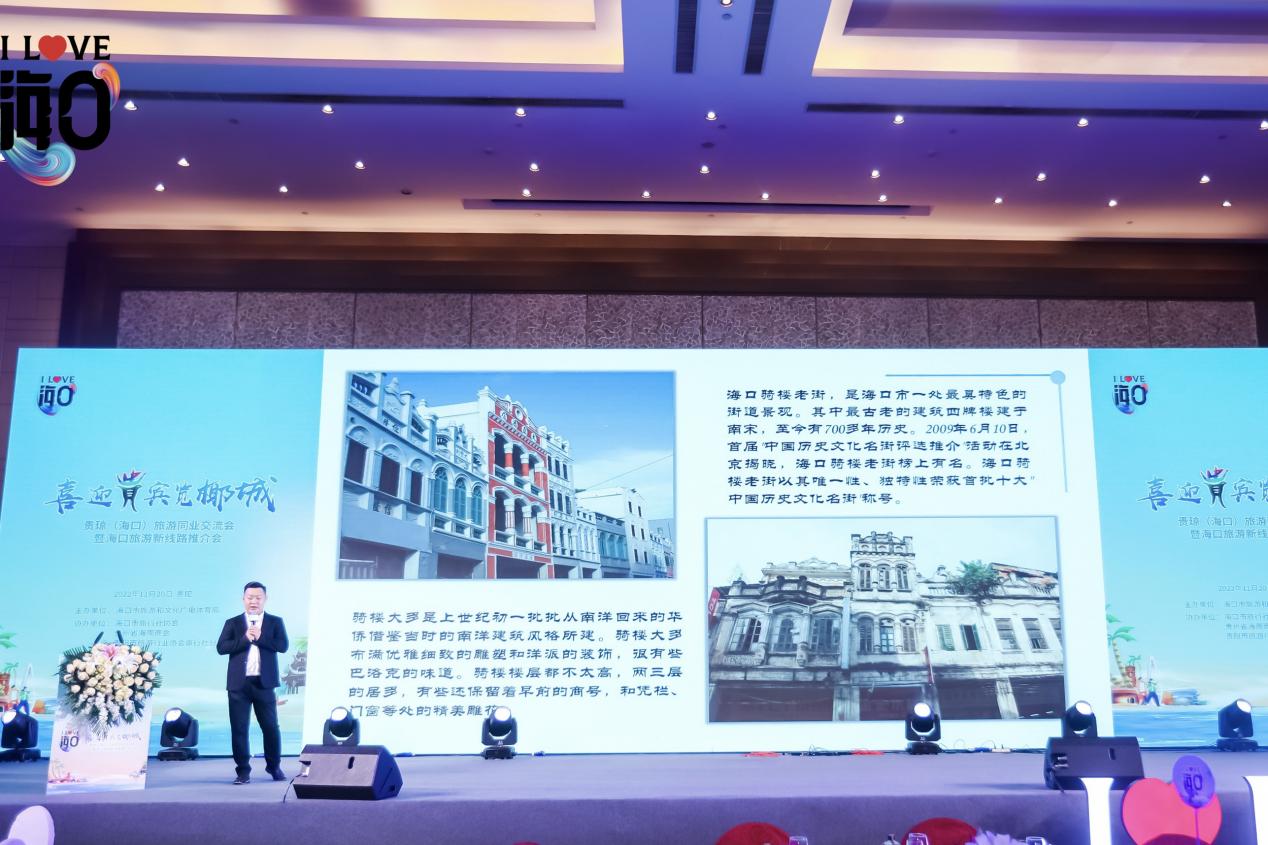 海南师范大学史振卿教授向大家讲述了海口的人文历史故事,让大家感受到椰城深厚悠久的历史文化底蕴;海南老字号“尚南堂”董事长郗志强以海口特产“鹧鸪茶”为线索,向大家介绍了海口清淡喜荤的饮食习惯、西洋特色的建筑风格和悠闲的生活方式;抖音短视频达人不觉晓向大家展示了镜头下海口的碧海蓝天、椰风海韵;贵州全域旅游产业互联网有限公司副总经理、海南贵州大厦(海南贵旅文化旅游发展有限公司)总经理张劲峰用自己的亲身经历,讲述贵州人在海口舒适、自在的生活感受,让会场的所有人都对海口心生向往。