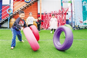 12月4日,在海口江东新区898艺术村,小朋友在村内玩耍。