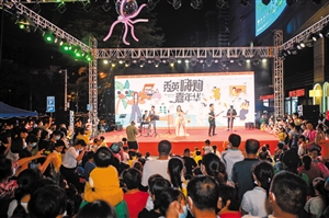 海口策划举办的旅游和文化消费季、数字旅文消费体验等活动,将从多方面活化城市文化印记。图为在海口远大购物中心举办的秀英“嗨购”嘉年华系列活动之夜间集市。 本报记者 石中华 摄