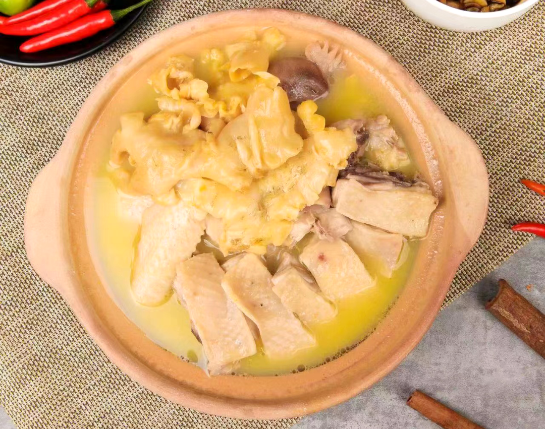 特色招牌五黑功夫鸡,因“三黑”+南药益智在鸡群中出圈,撩动岛民胃蕾“多巴胺酸”,金流欲人的汤底,一口下去这滋养功夫就到家了。