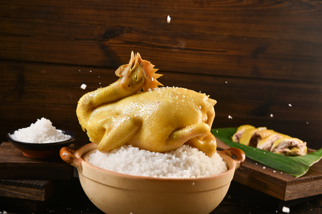 其招牌特色菜———火山泥土窑黄皮鸡,选用散养文昌鸡,用秘制配方腌制晾干后再用新鲜的黄皮叶与火山泥进行包裹,放入高温火山泥土窑炉中烤制,土窑烤制出的黄皮鸡果香醇厚、肉质细嫩、口味鲜美、香而不腻,连骨头都透着香,让人回味无穷。