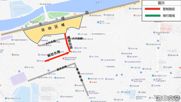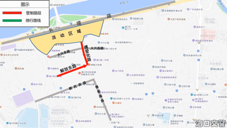三、长堤路往博爱北路方向的车辆,建议绕行新华北路、新华南路、文明西路或和平北路等就近路段。