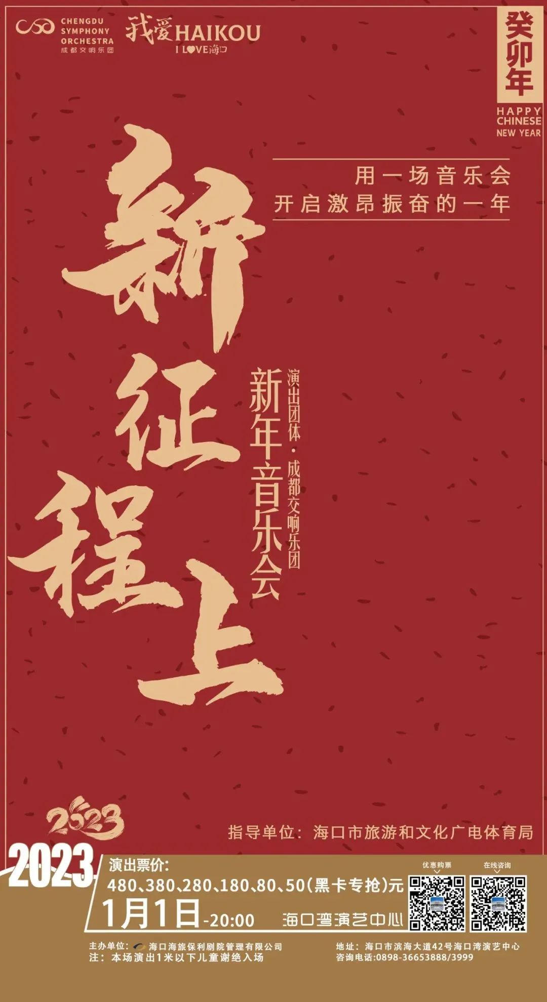 新年的第一声,在交响乐中感受跨年的快乐氛围。辞旧迎新之际,在海口市旅文局指导下,《新征程上》新年视听交响音乐会将在海口湾演艺中心隆重举行。该音乐会由成都交响乐团倾情演出,结合现场大屏,为海口市民带来一场恢弘盛大的视听双重享受。