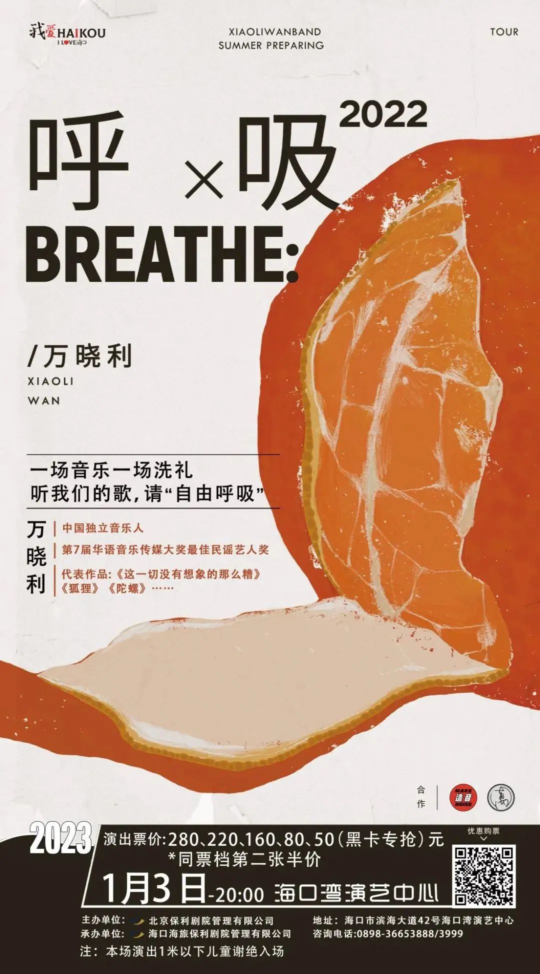 1月3日, 保利城市岛屿音乐季 ,一场浪漫的“出逃” 。民谣、流行、摇滚、世界音乐、爵士...尽在“城市岛屿”音乐季。海口湾演艺中心邀你在“剧院蹦迪”,跟着音乐一起开燥!比音乐节更舒适,比场馆更沉浸,比livehouse更通风!第一站,从万晓利开始。