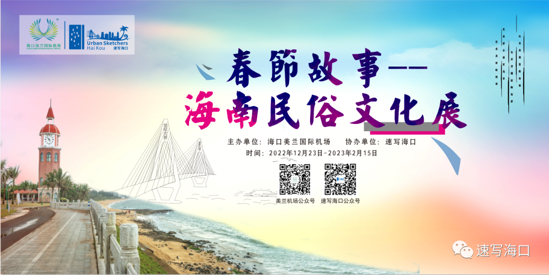 新年邀你来看展!“速写海口”四周年画展暨2023年元旦海南民俗风情画展将于2022年12月23日—2023年2月15日在海口美兰国际机场T2航站楼F3西北指廊展出,一起来感受海口这座城市的温暖吧!