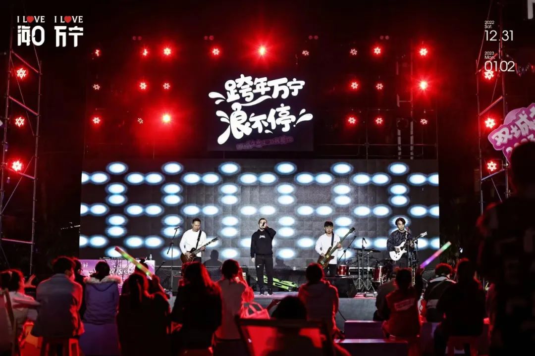 此次跨年活动万宁主会场设置在王府井悦舞小镇,“恋人悦舞”跨年狂欢音乐会聚集了小船左岸乐队、六宇乐团、Tuesday Manket、伟大科学家乐队等众多乐队,伴随着动人音乐和绚丽灯光,全场氛围被一次次推向高潮。此外,活动现场还设置了花漾游园会、浪漫市集、“爱的100种方式”互动游戏、“时间的玫瑰”摄影展、“玫瑰应急”计划等多种活动形式,为市民游客提供了一个集音乐、浪漫、激情于一体的欢乐跨年派对。