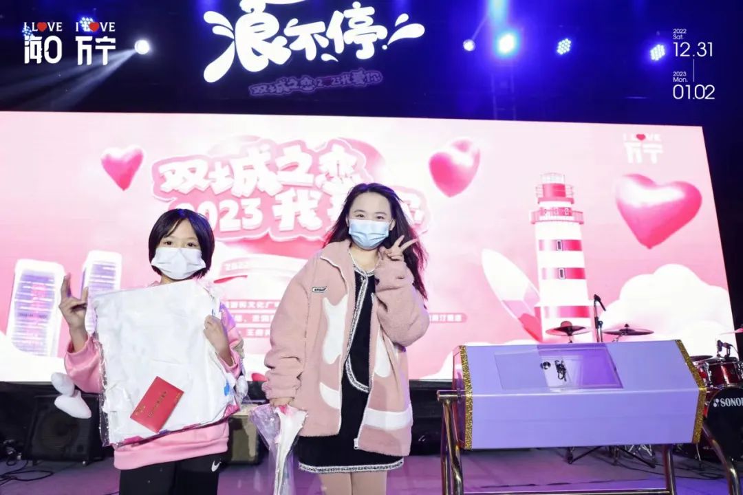 12月31日,由海口市旅文局和万宁市旅文局联合策划推出的“双城之恋·2023我爱你”海口&万宁跨年联合营销活动在海口、万宁两地同步举办。