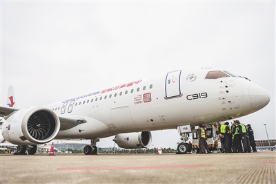 1月2日,国产大飞机C919飞抵海口美兰国际机场。 新华社记者 张丽芸 摄