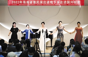 海口市艺术团艺术总监蒙麓光告诉记者,此次惠民文艺演出系列活动今年初开始筹备,市艺术团精心策划并排演了诸多内容丰富,群众喜闻乐见的新节目。从2022年10月底拉开帷幕,相继在海口演艺新空间(二期)、五源河体育馆等项目工地,火山口、假日海滩等景区和海口市多个社区、友谊南海城等中大型商圈、东山镇东苍村等村镇开展20场惠民文艺演出,让人民群众享有更加充实、更为丰富的精神文化生活,为民生幸福“加码”。