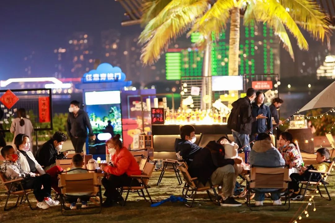 除此之外,“我爱海口·我们的节日”还向市民大众发出了市集邀约。潮流摊主们集齐精致生活灵感,上百家摊位网罗各色美食、文创、手作、潮流饰品等特色品牌摊位。在每个黄昏的浪漫时刻,人们便开始集聚,与家人和好友相伴,吹吹海风,逛逛市集,挑选自己心仪的美食及饮品,在欢声笑语中享受着美好的时光。