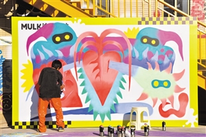 ▶在上邦百汇城篮球场,一场街头文化派对正在上演,活动内容包括涂鸦小聚会、交互涂鸦show、涂鸦驿站以及涂鸦分享沙龙等“涂鸦体验四部曲”,让现场所有人置身于一场充满街头文化元素的“派对”中。图为1月6日,涂鸦爱好者正在完成街头涂鸦作品。 本报记者 杨鹤 摄