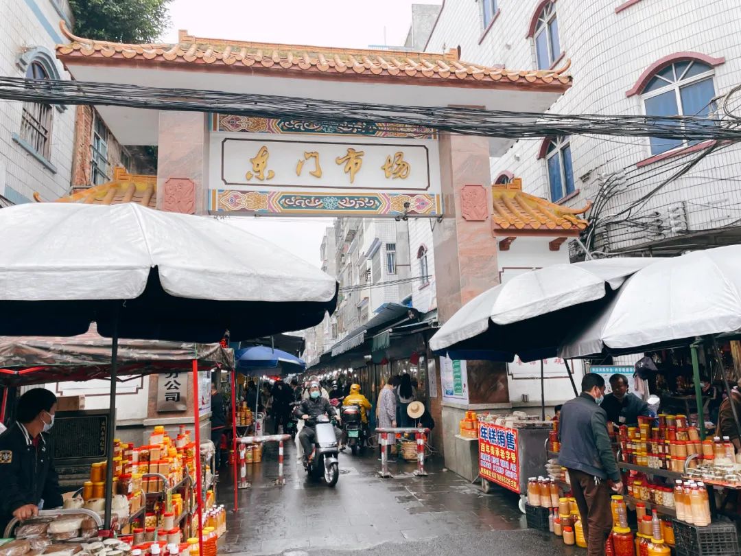 一走进东门市场,本地土特产在这里成为最热销的产品。腊肉、腊肠、肉干......一股股香味就在周围四溢开来,吸引不少市民游客前来购买。
