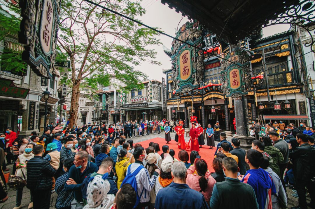 国潮醒狮、好“狮”成“兔”欢乐派巡游、大型实景真人沉浸式剧本杀—《夜澜·风语》、比武招亲、再现芳华、曲艺杂技、年代快闪……演艺不间断,全天不打烊。让你能够在年味十足之中收获倍增的幸福感和体验感。