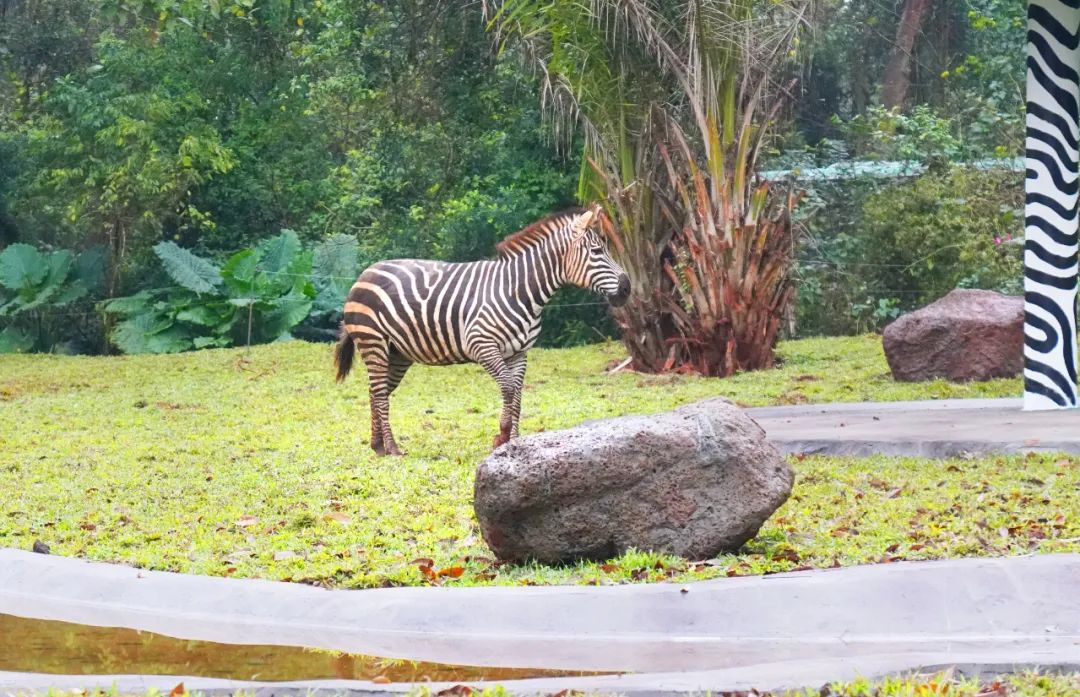 全新设计打造的斑马、角马、欧洲盘羊、加勒比火烈鸟展区总面积达4500平方米。新展区十分贴合园区原有植被地貌,展区面积严格按照动物容纳度进行修建,确保运动面积宽阔。展区内结合动物生活习性,修建了水池、假山、遮阴避雨亭,保留原有的绿化隔离带,提供遮蔽场所。地面铺设茵茵草坪,同时结合海南的热带特色种植了蒲葵、橡胶树、三角梅及草本、禾本科及藤本植物,最大程度为动物朋友们营造生态自然景观。
