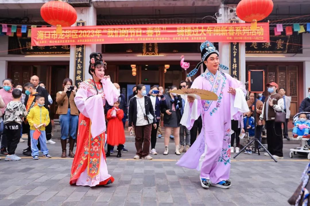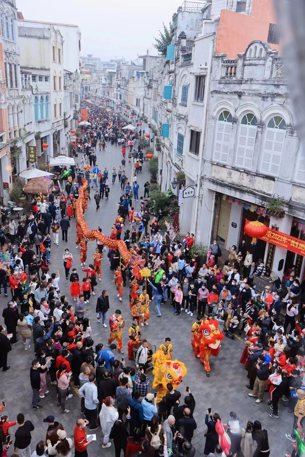 街区里,“龙狮”贺春、琼剧、网红乐队等多场次表演,给新春游街的市民游客带来惊喜,欢笑声、喝彩声充满整条老街。