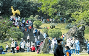 春节假期,在海口火山口国家地质公园,不少市民游客登高祈福。 本报记者 苏弼坤 摄