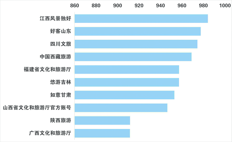 图10 省级文化和旅游政务抖音号传播力TOP10