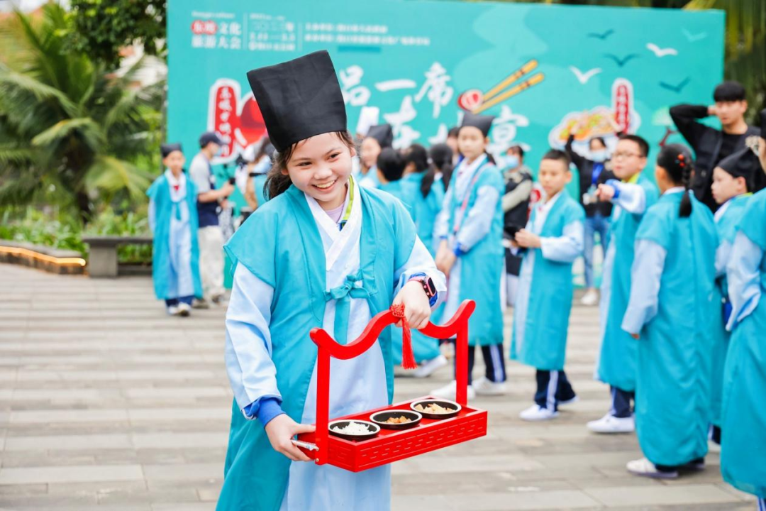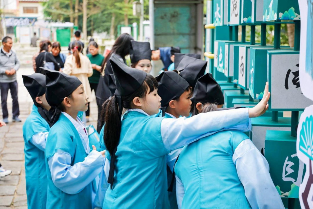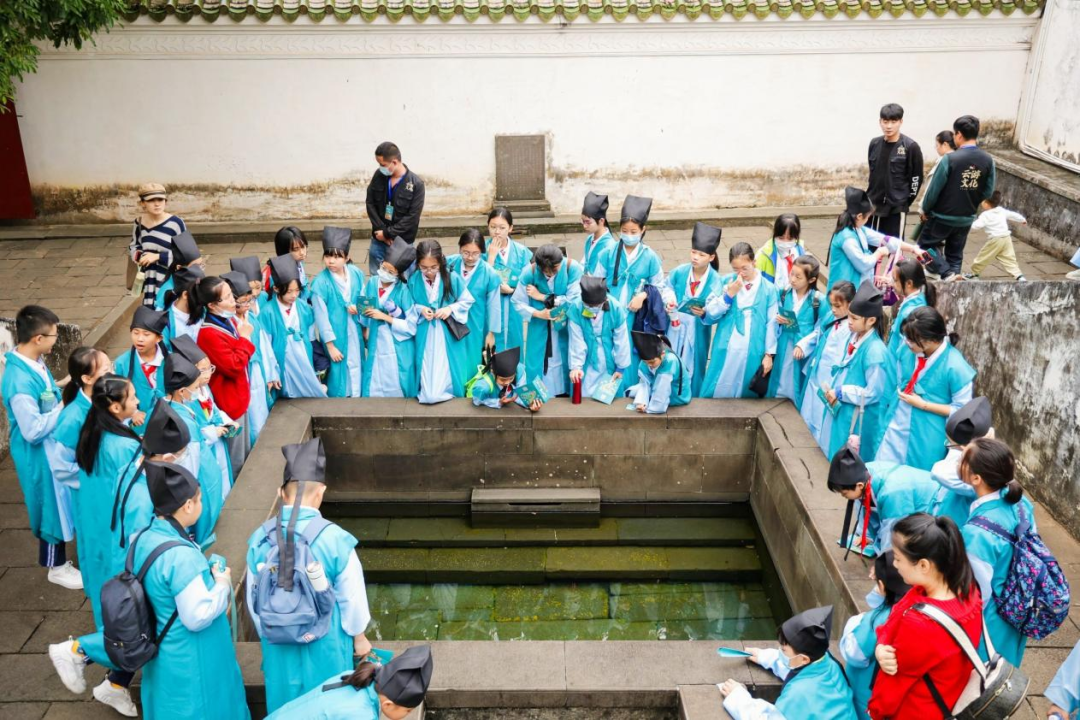 2月25日至26日,由海口市第二十五小学、海口市琼山第三小学的师生组成的研学队伍,在领队老师和讲解员的带领下身着宋代学生服,于海口市五公祠体验“宋代学堂的一天”。