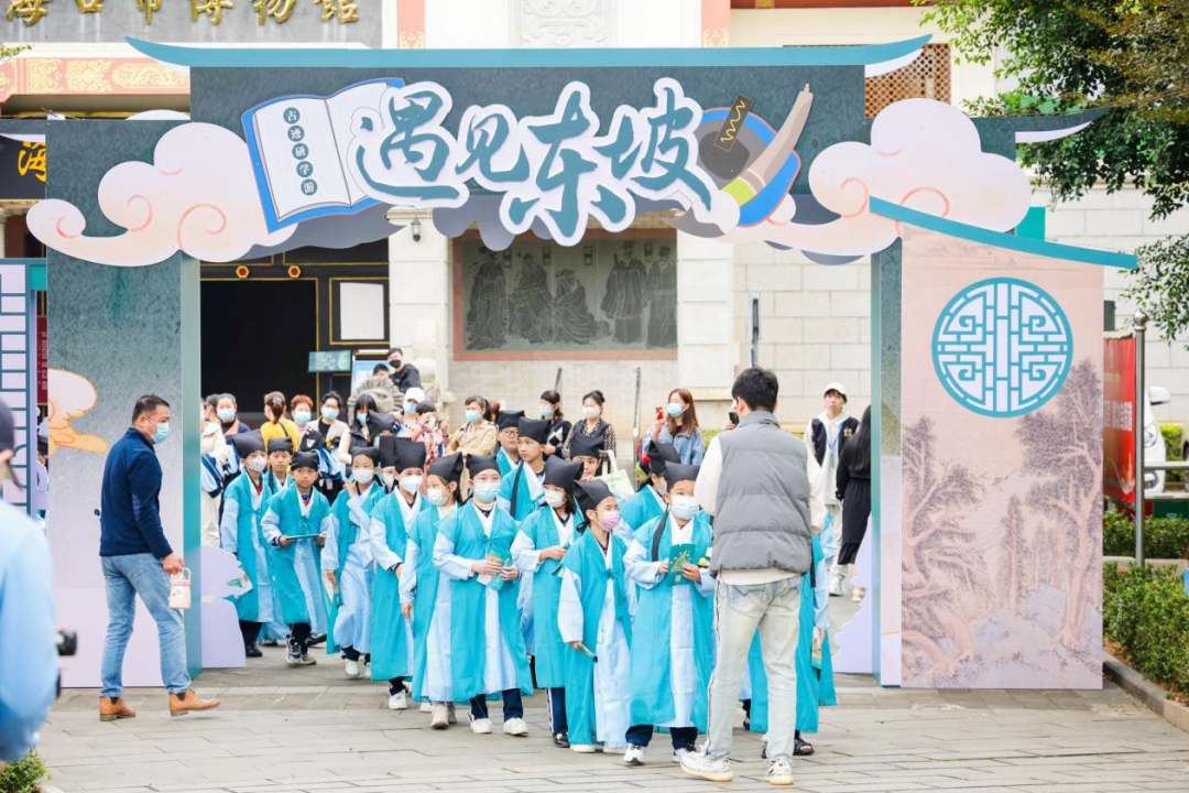 孩子们以此体验参观东坡文化长廊、玩转古诗游戏墙、参观苏公祠、海南第一楼,在学圃堂里跟随东坡“老师”学习东坡先生的佳作,体验古代碑文拓印、活学活用巧对诗词、挥洒创意绘制长卷,在活动的最后还体验了一把宋代蹴鞠的“点球大战”。