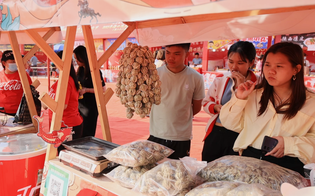在冼夫人文化广场上,龙华区特色产业展销市集,红红火火的布置吸引不少市民游客驻足。来自仁南蘑菇生态农场的平菇菌种、干制木耳,斌腾石斛基地的石斛茶,柏盈兰花基地的多彩蝴蝶兰,还有脱贫户自产的木薯、酸菜和海燕梦企业的花生油等十余种农特产品让集市乡土味十足。