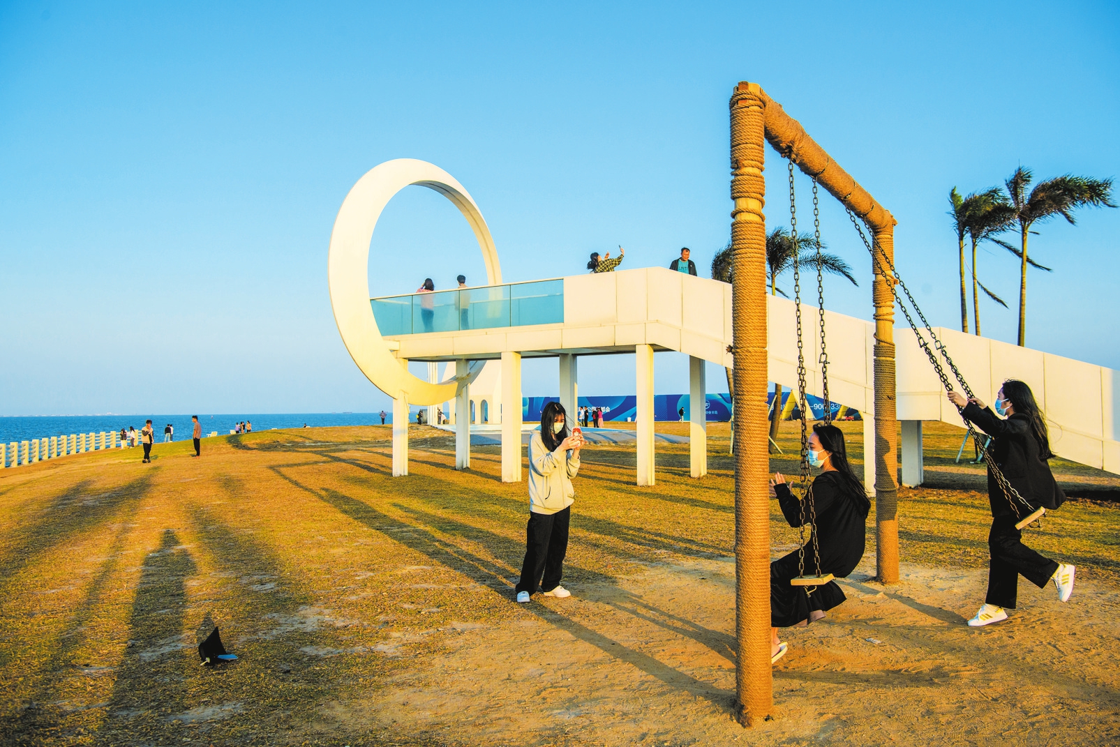 ▲目前,位于新埠岛的拾贝公园已成为市民游客拍照打卡的新去处。