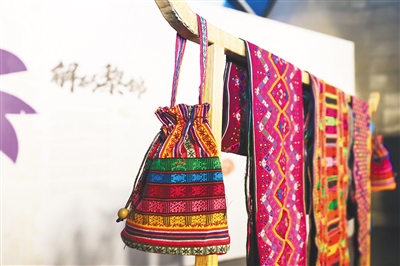 海南国际旅游岛(上海)音乐推介会上摆放的黎锦。 (省旅文厅供图)