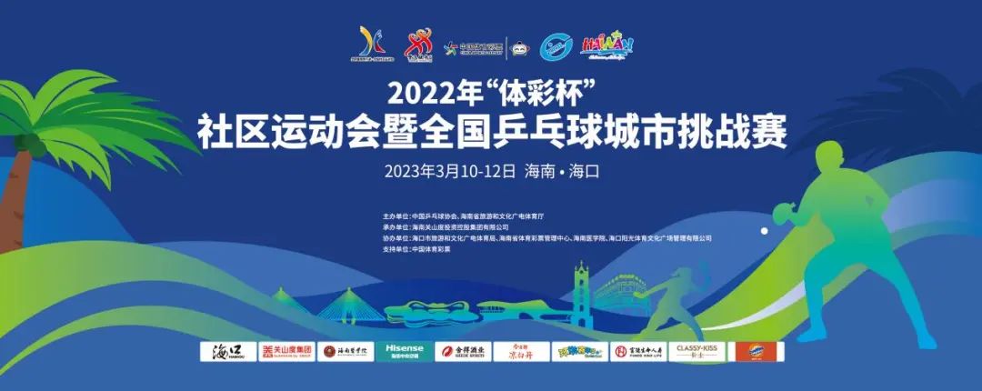 本次比赛由中国乒乓球协会、海南省旅游和文化广电体育厅主办,海南关山度投资控股集团有限公司承办,海口市旅游和文化广电体育局、海南省体育彩票管理中心、海南医学院以及海口阳光体育文化广场管理有限公司协办,中国体育彩票支持。