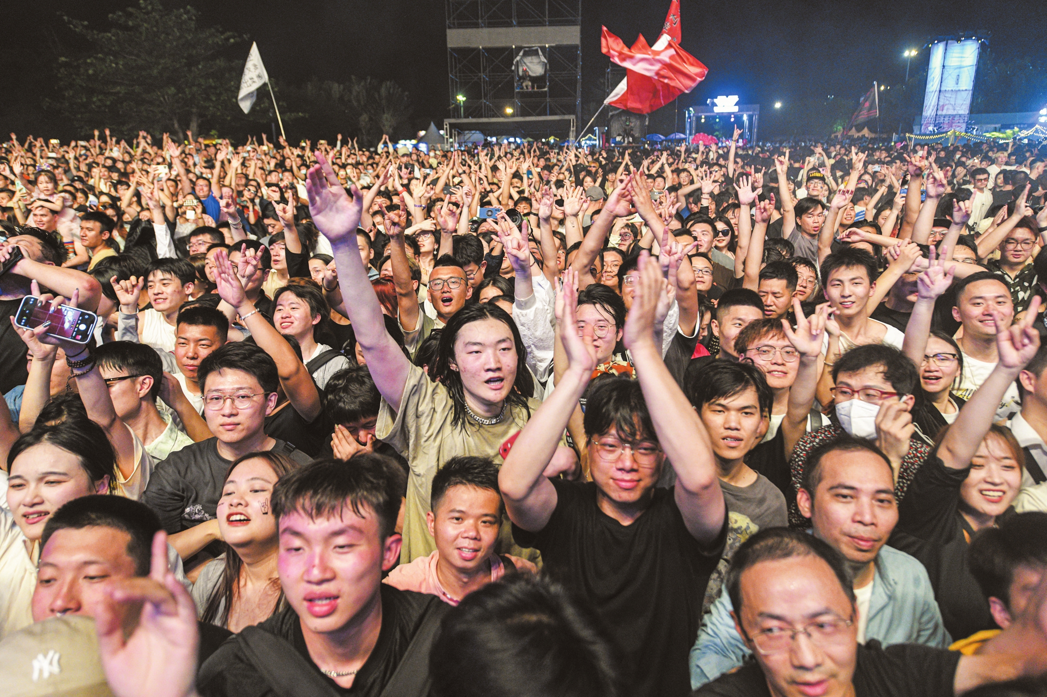 ③3月19日,在“2023海口迷笛音乐节”现场,乐迷为摇滚狂欢。